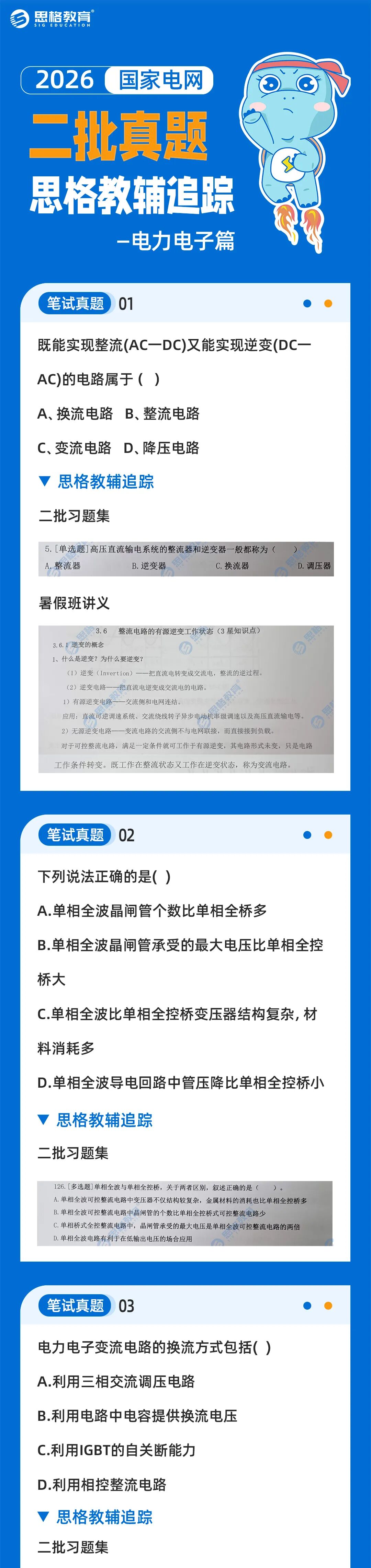 今天,小思就根據(jù)同學們回憶的考試題目,整理了電力電子部分與教輔內(nèi)容一致的考題,一起來看看吧~